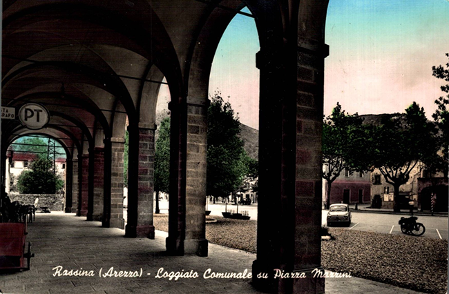 Cortona, edificio postale in Via B. Benedetti 2-8, in una cartolina del 1979