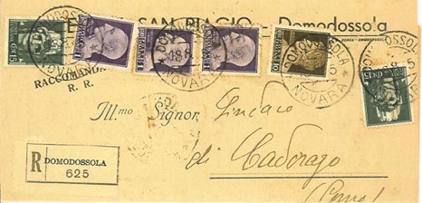 d'uso) e due 0,15 Novara. Partita da Domodossola (NO) il 18.08.45 a