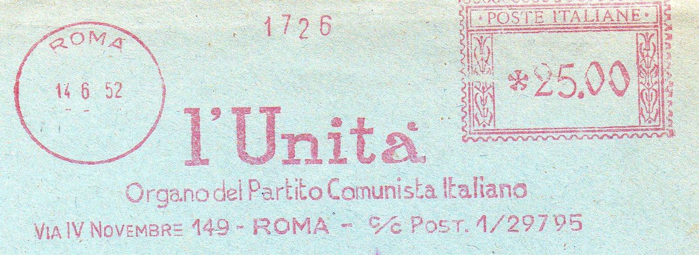 | Affrancatura meccanica del giornale l’Unità, organo del Partito Comunista Italiano |