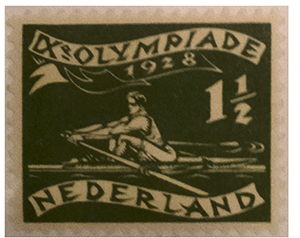 La prima affrancatura ufficiale dedicata al canottaggio, un’emissione olandese avente valore facciale di 1 ½ centesimi, risale al 1928, anno del trionfo del 4 con (timoniere) alle olimpiadi di Amsterdam.